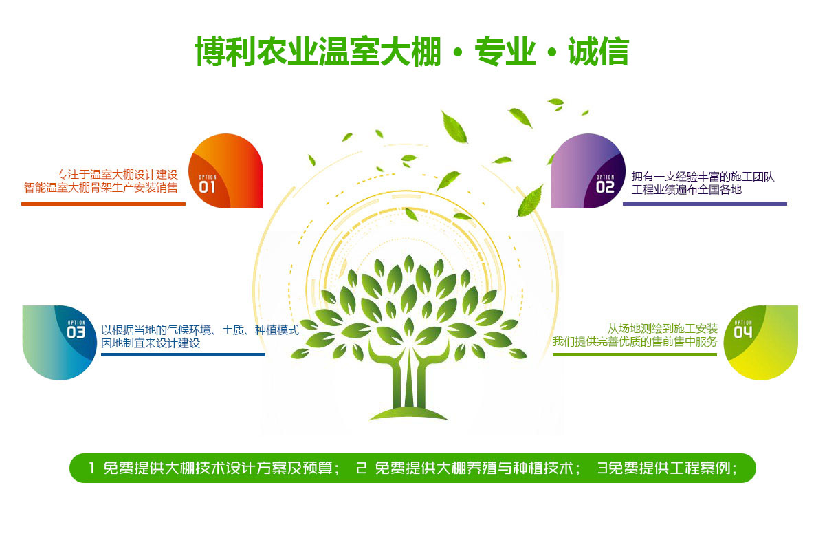 安陽(yáng)博利農(nóng)業(yè)科技有限公司,是一家專(zhuān)業(yè)生產(chǎn)溫室大棚的現(xiàn)代化企業(yè)。公司擁有大棚材料生產(chǎn)線(xiàn),各種加工折彎,縮頭等設(shè)備,及專(zhuān)業(yè)研發(fā)、技術(shù)人員,提供設(shè)計(jì)、制作、安裝及售后全程服務(wù)。公司在鍍塑鋼管大棚,幾字鋼、C型鋼溫室大棚,薄膜連體大棚,玻璃智能連棟大棚,反季節(jié)蔬菜溫室大棚,花卉大棚…